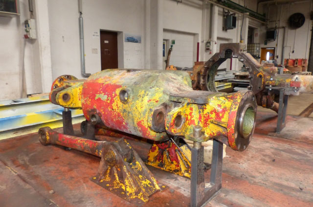 So kam am 20.03.2012 bei strahlendem Sonnenschein der KAELBLE Muldenkipper in einem traurigen Zustand ins MEILLER Stammwerk nach München. 17 Tonnen Alteisen – nicht fahrbereit. Frisch abgeladen schleppte man das Fahrzeug zunächst in eine leer stehende Halle. Um die Restauration des Fahrzeuges außerhalb und neben dem eigentlichen Kerngeschäft durchführen zu können, benötigte man ein Konzept.
