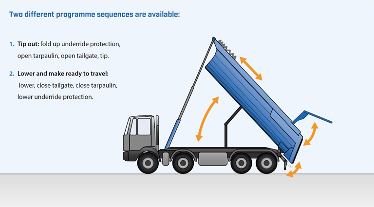 The electric drive offers a clear advantage: hydraulic systems can be operated according to demand, ensuring that the pump or hydraulics only run when the tipper body is in motion hence preventing unnecessary energy consumption.